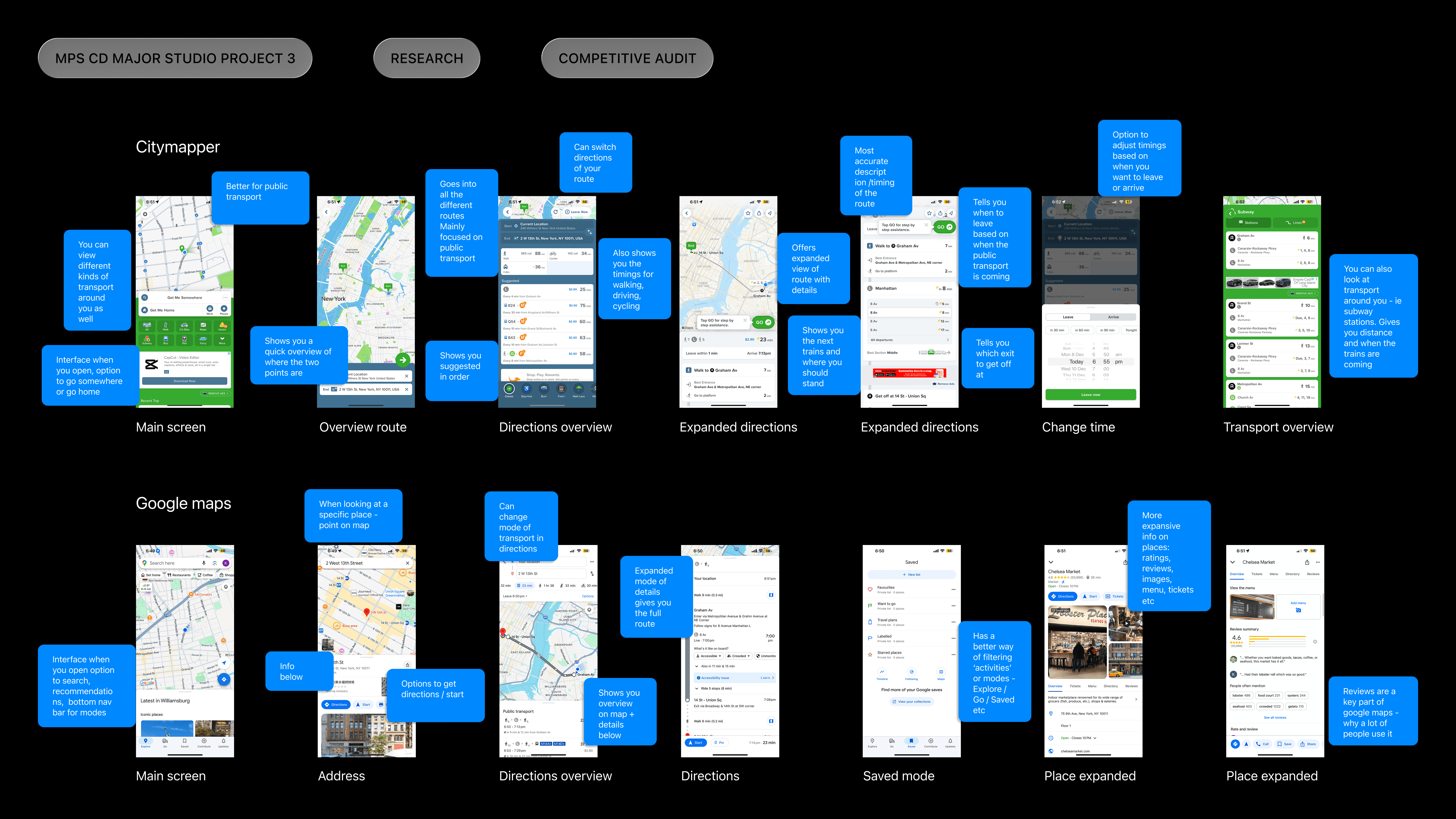 I started with an audit of Apple Maps and a competitor analysis to better understand what the opportunities are.
