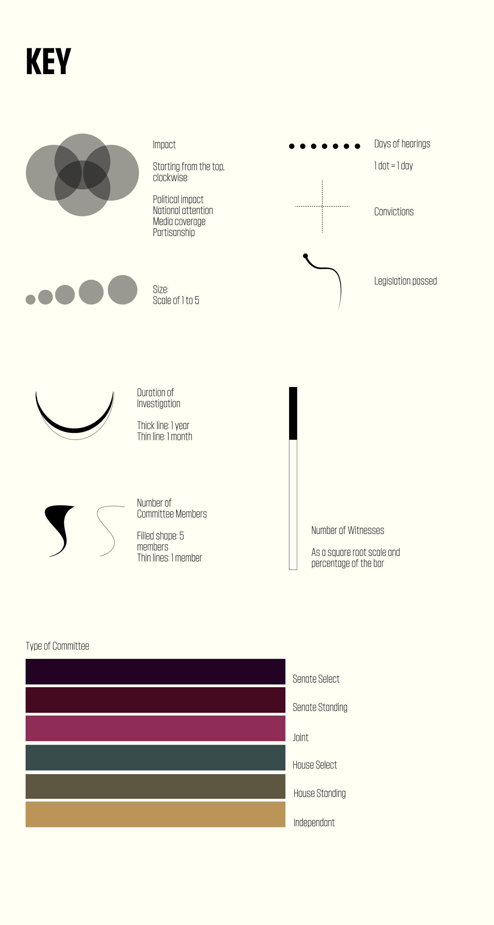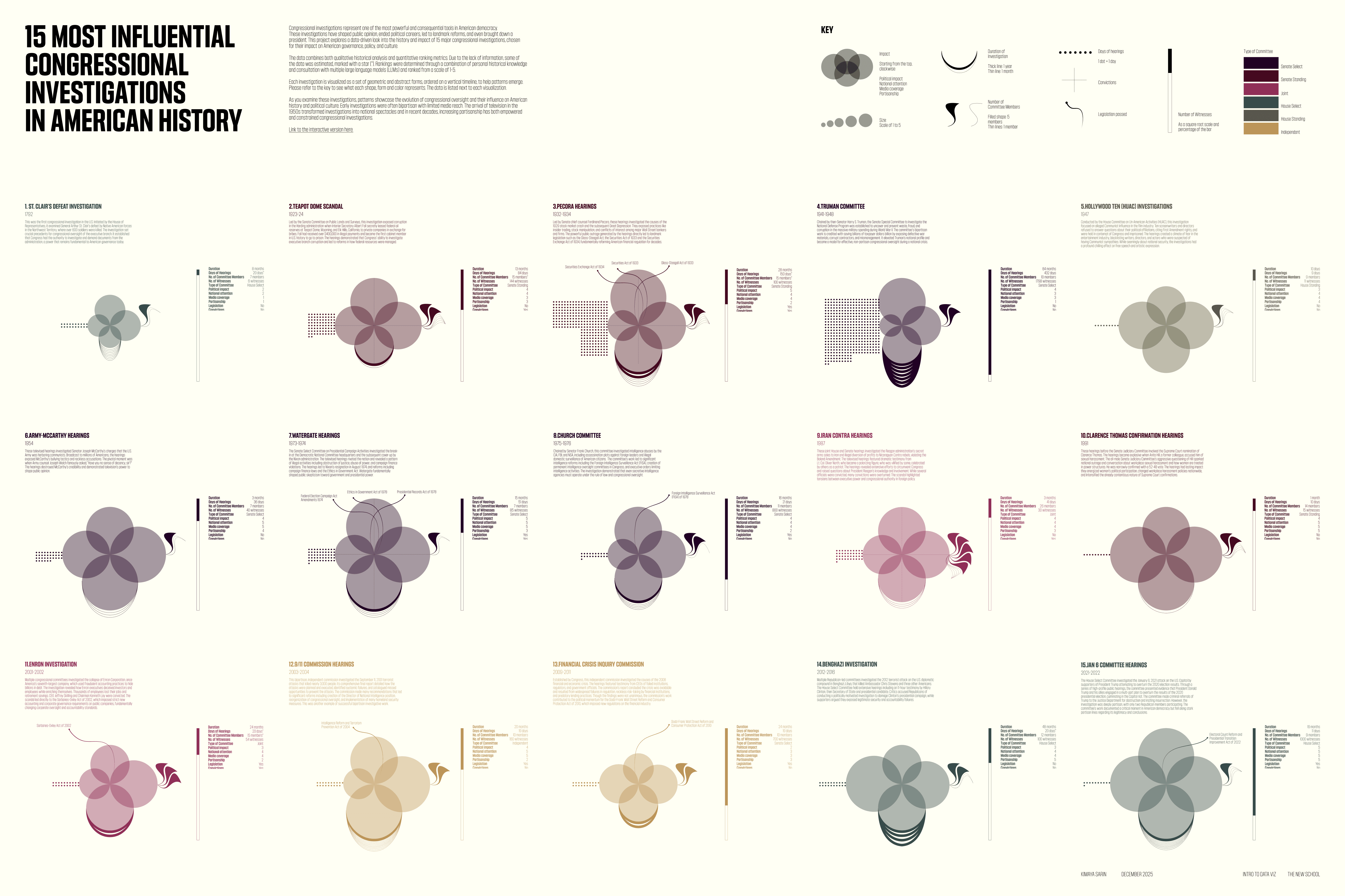 For my final project, I chose to create a data visualization piece on 15 of the most influential Congressional investigations in history.