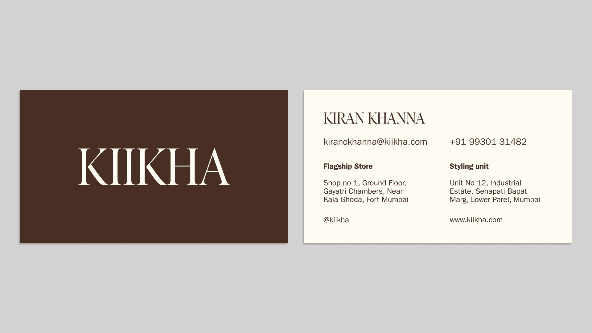 Style Junkiie is an Indian fashion brand based in Mumbai, founded by Kiran Khanna, which recently launched Kiikha as an elevated "younger sibling" of the brand. My team and I worked on the brand strategy as well as the visual and verbal identity, with me leading the design. The identity pays tribute to India's centuries-old textile traditions, where artistry lives in repetition, pattern, and intricate detail. The monogram blends English and Devanagari scripts of the letter 'K,' forming a diamond at the center as a nod to Style Junkiie's legacy. The color palette and serif font create a refined and editorial look and feel. The system is minimal yet expressive, balancing precision with ornamentation to feel contemporary while remaining connected to Indian heritage.